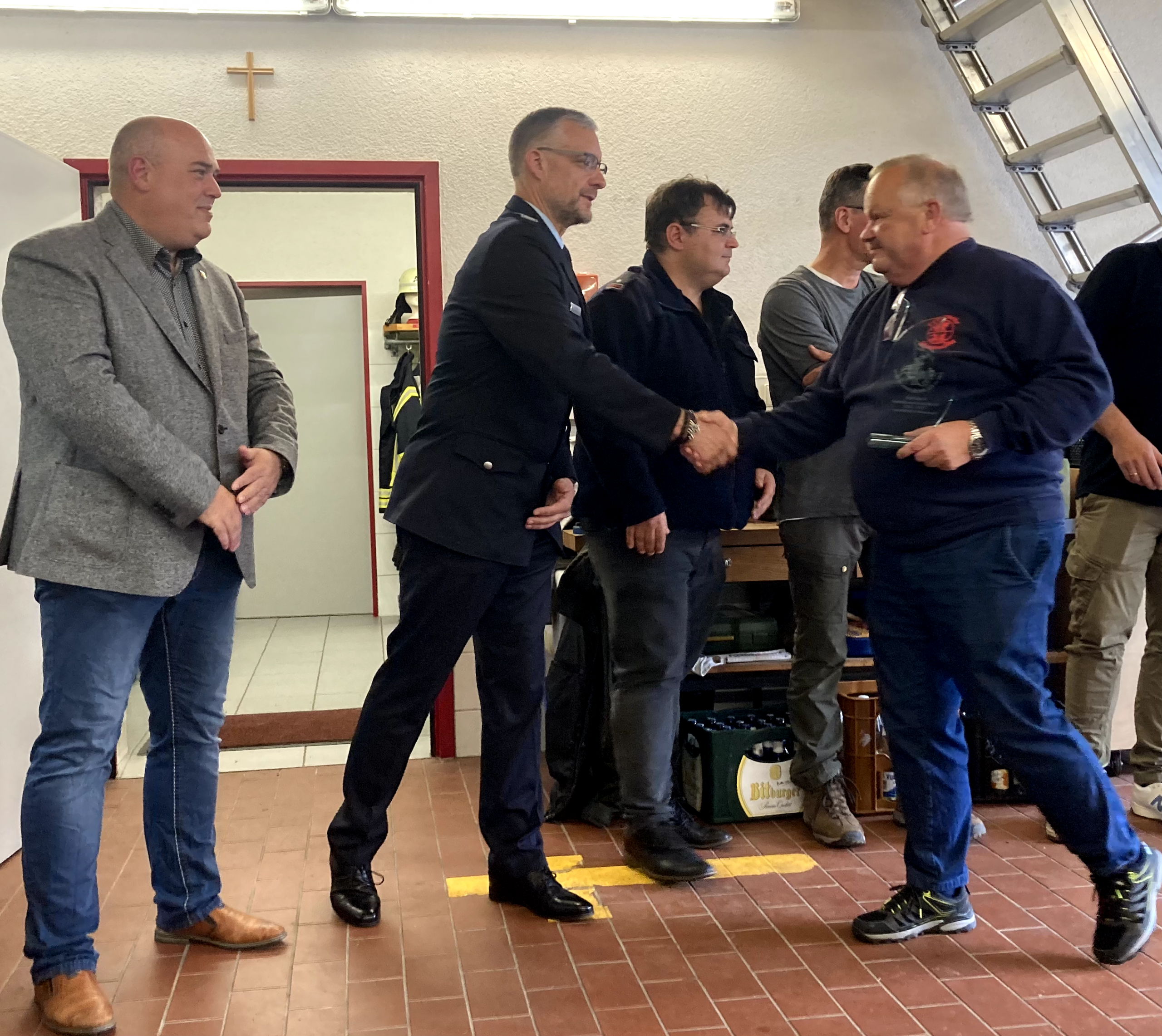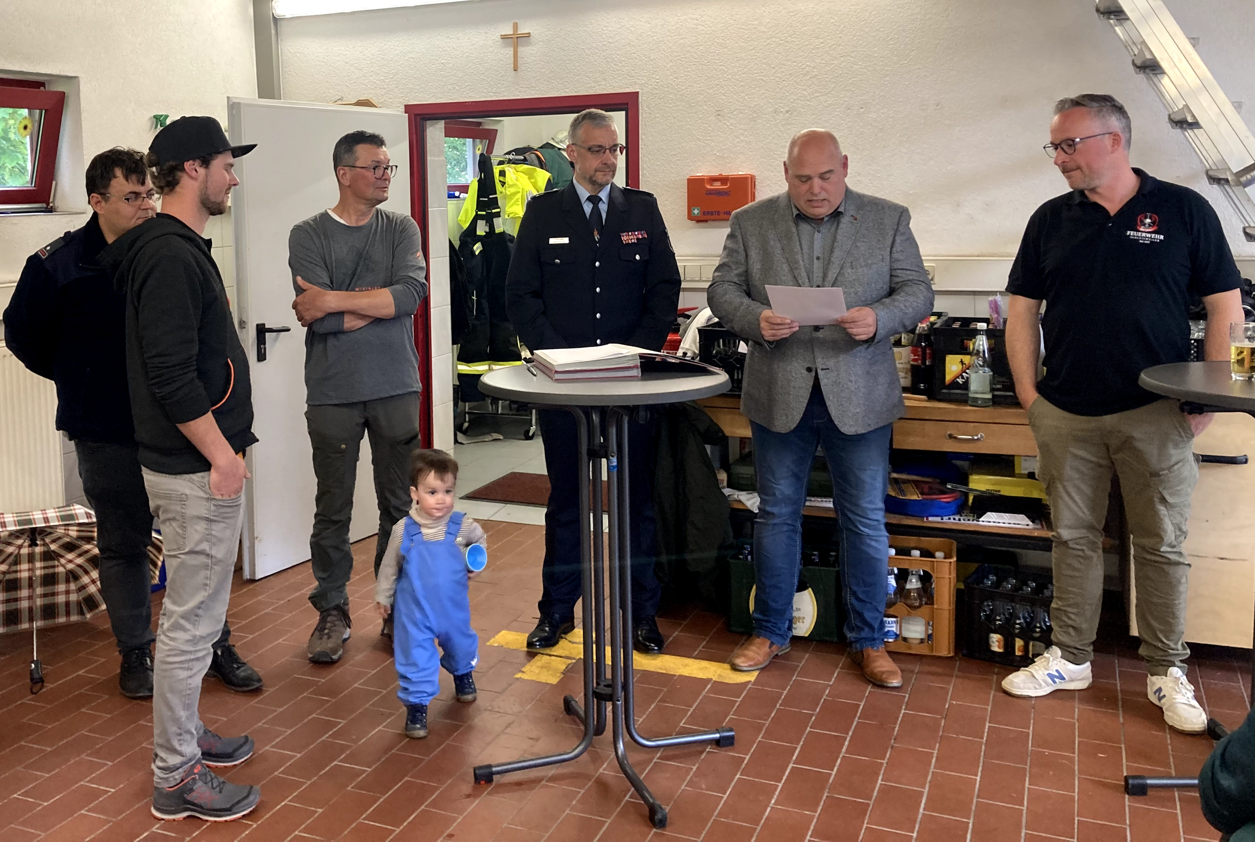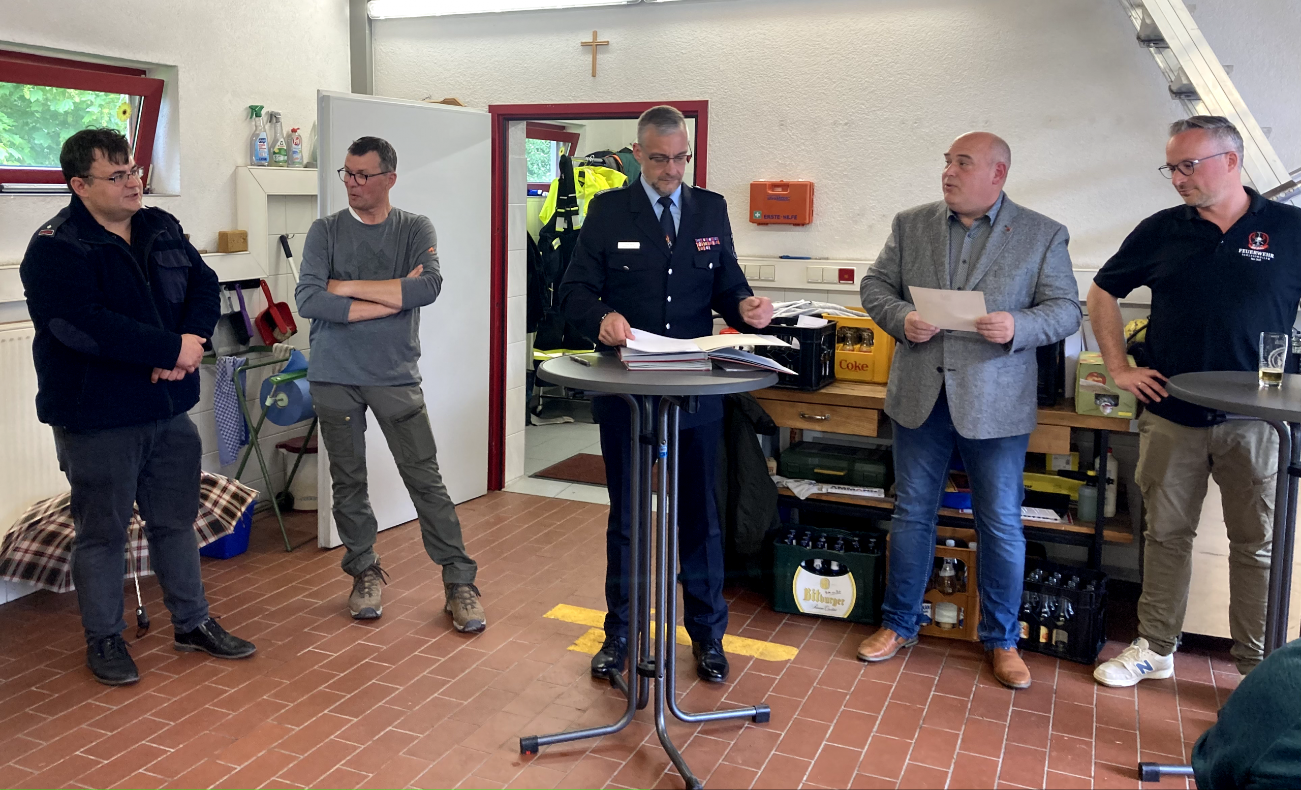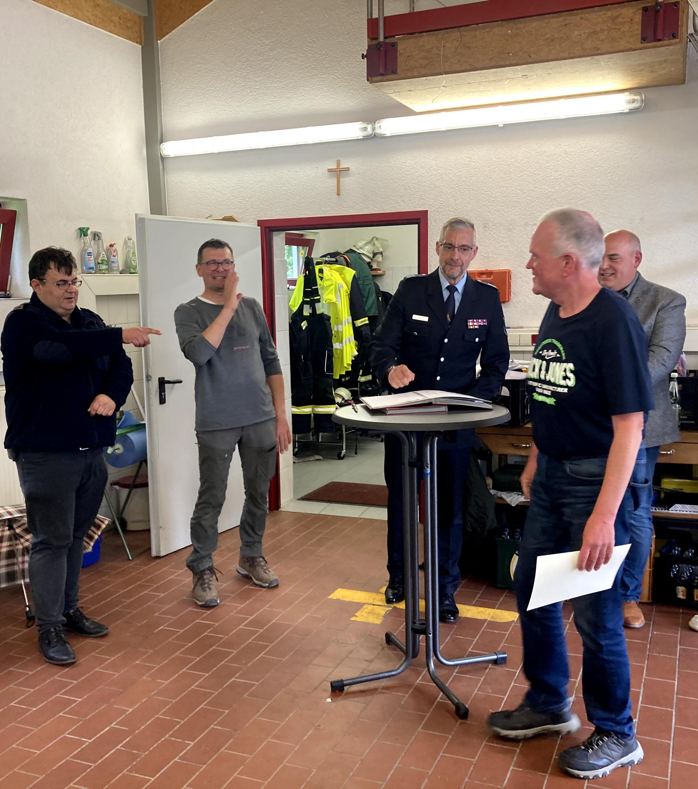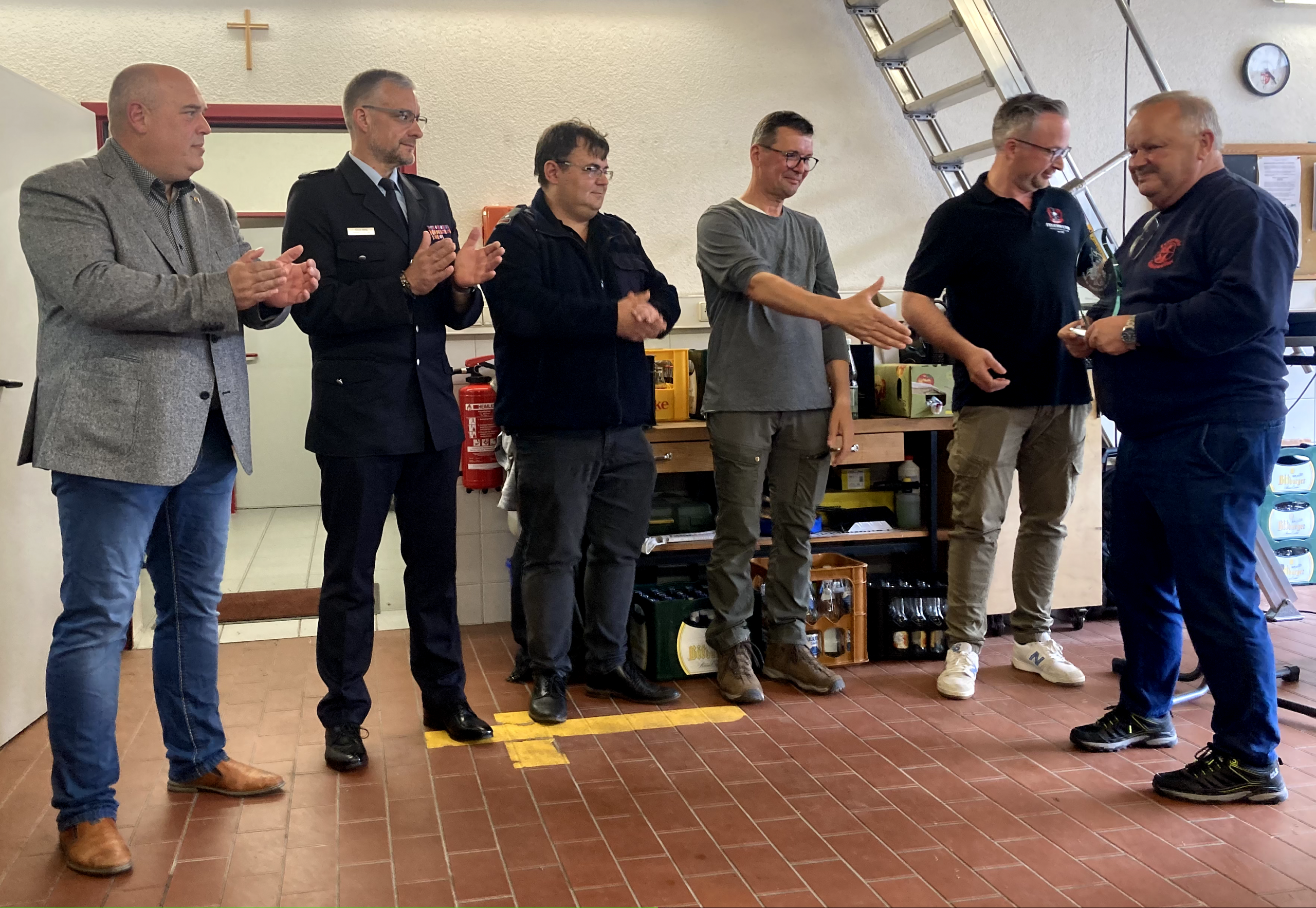 Im Anschluss traf man sich im Gerätehaus, wo in einem feierlichen Rahmen mehrere Beförderungen und Ehrungen durchgeführt wurden. Damit wurde das Engagement und die langjährige Mitarbeit verschiedener Kameradinnen und Kameraden gewürdigt.