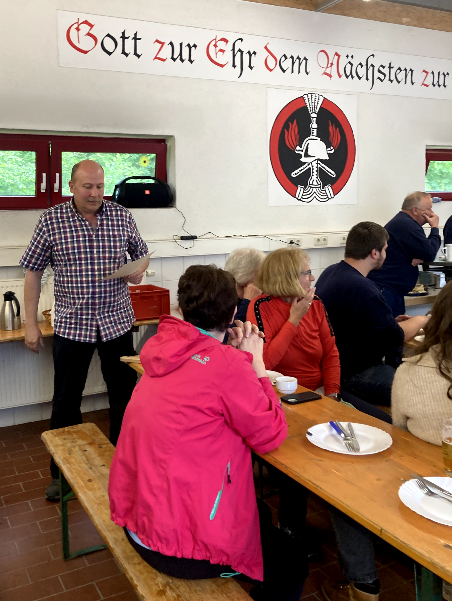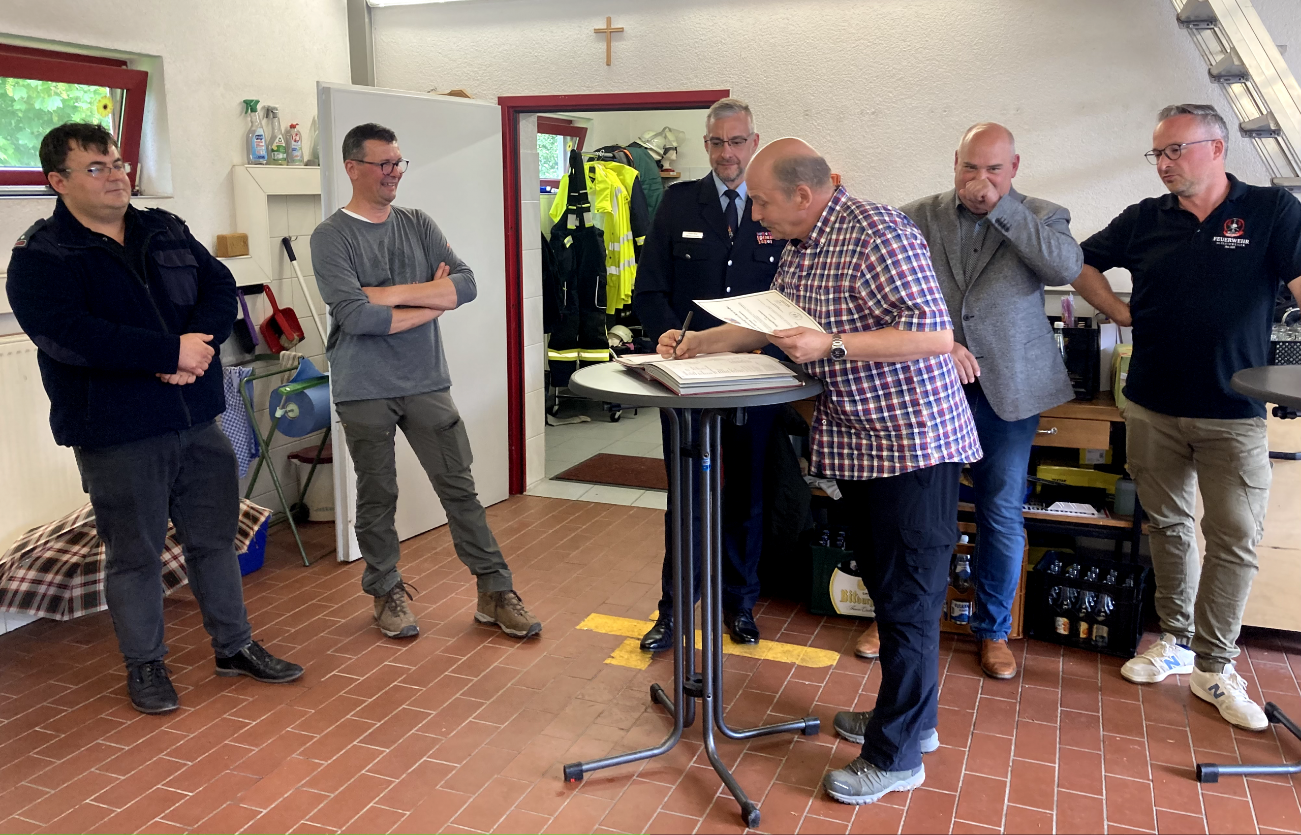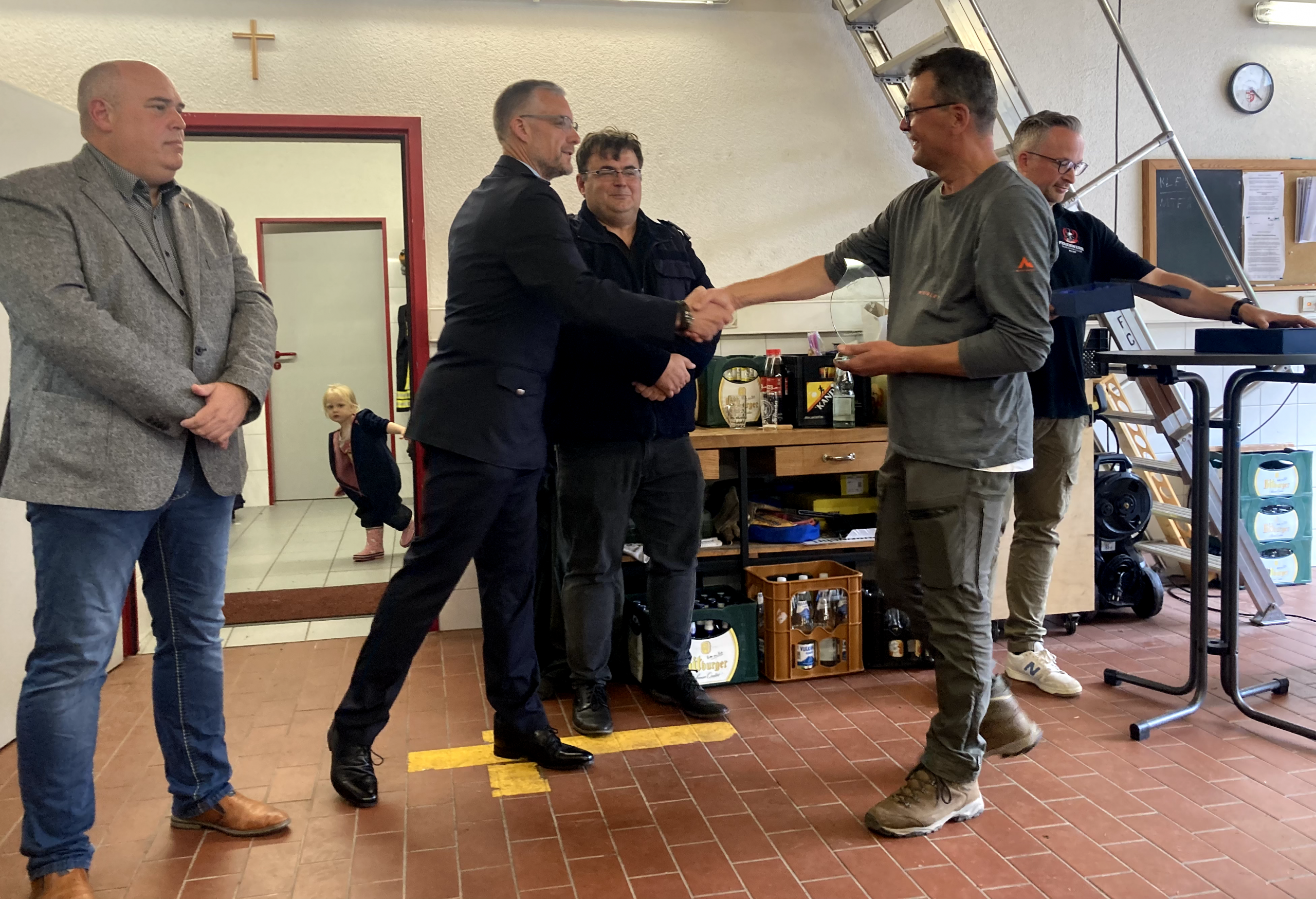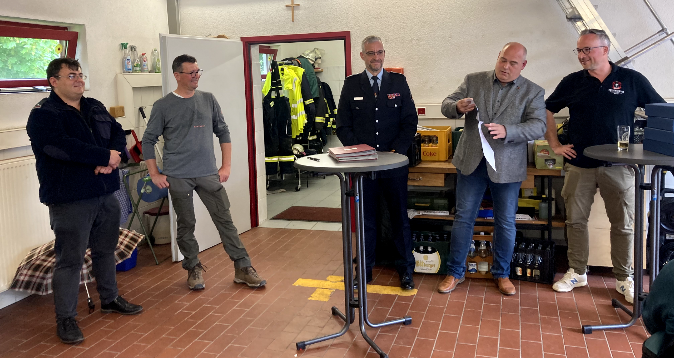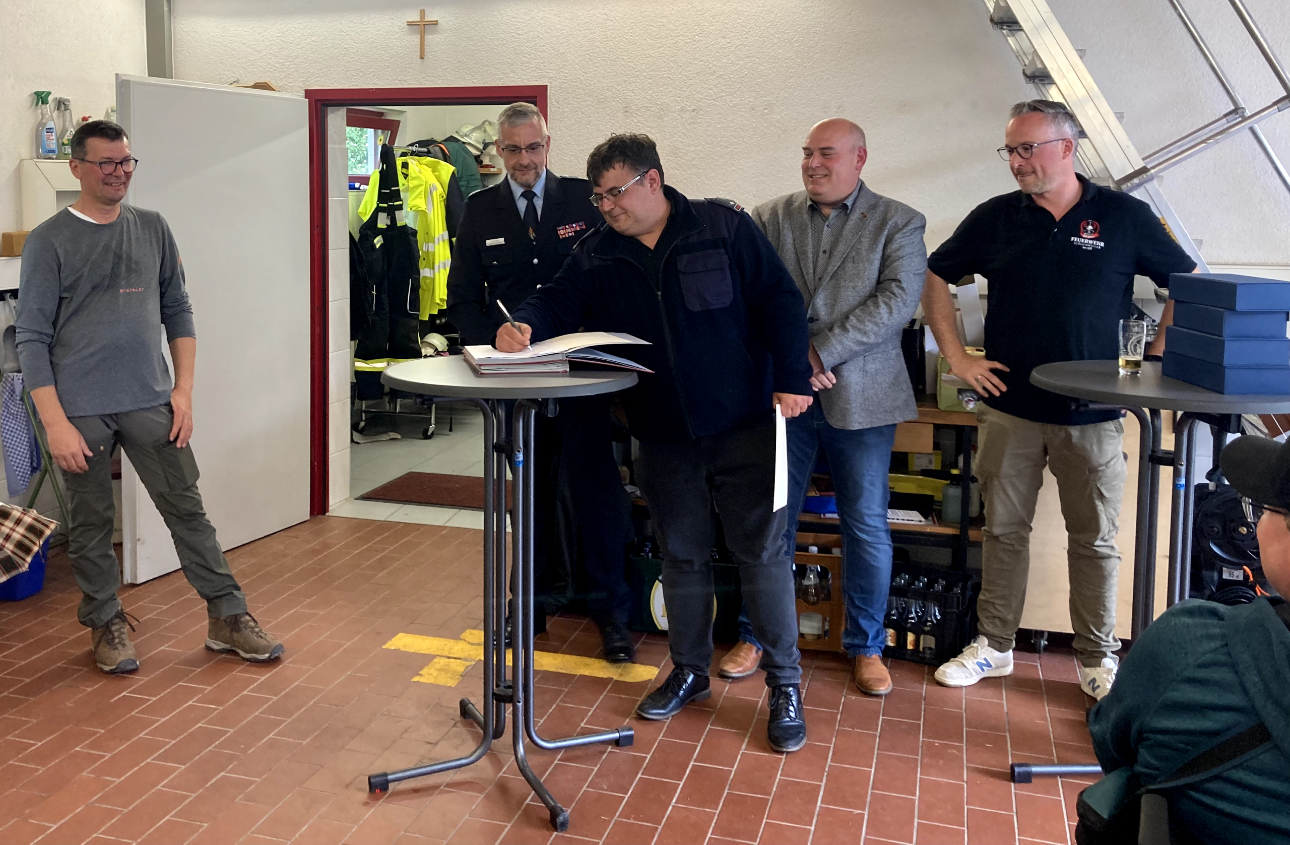 Im Anschluss traf man sich im Gerätehaus, wo in einem feierlichen Rahmen mehrere Beförderungen und Ehrungen durchgeführt wurden. Damit wurde das Engagement und die langjährige Mitarbeit verschiedener Kameradinnen und Kameraden gewürdigt.